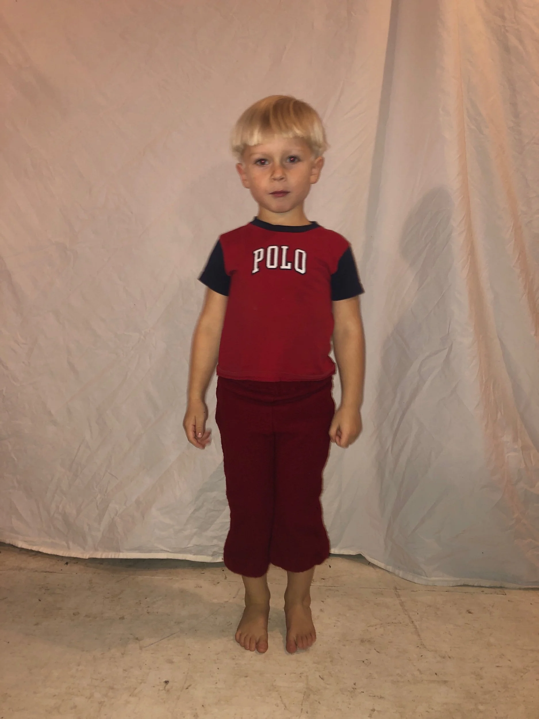 Maddy is 4.5 and wearing the 4/5. The last two pictures he’s wearing the 2/3.